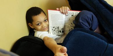Earn a Book students read stories and do homework with Cedar Crest College tutors. On a trip to a local bookstore, students pick books of their own!