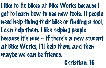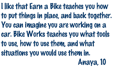 In Earn a Bike, students are paired with mentors for 24 hours of lessons in bike mechanics and safety.